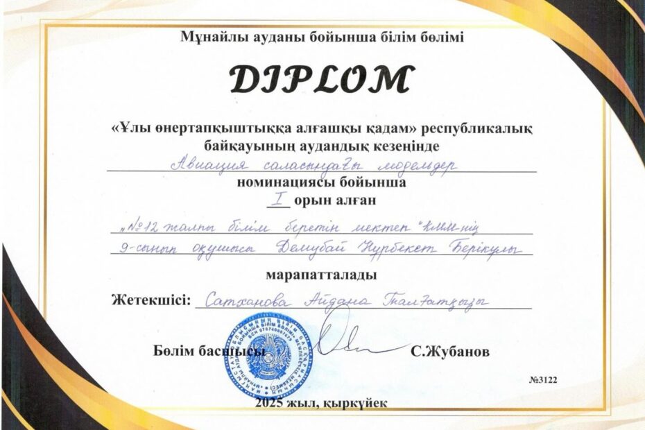 “Ұлы өнертапқыштыққа алғашқы қадам” республикалық байқауының аудандық кезеңінде “Авиация саласындағы…Қыркүйек 11, 2025
