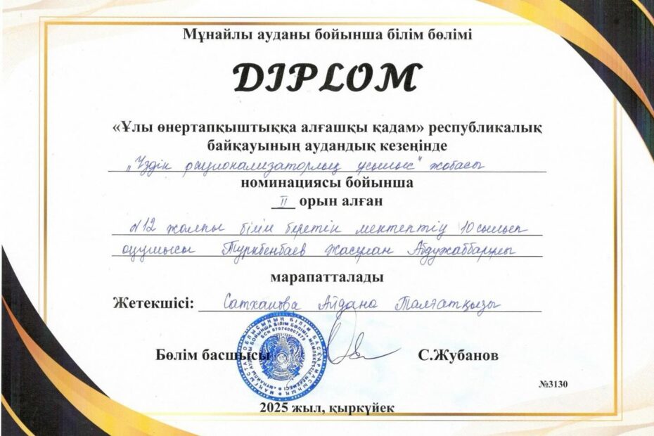 “Ұлы өнертапқыштыққа алғашқы қадам” республикалық байқауының аудандық кезеңінде “Үздік рационализаторлық…Қыркүйек 11, 2025