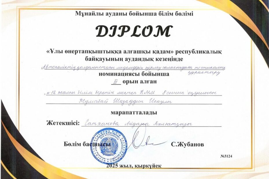 “Ұлы өнертапқыштыққа алғашқы қадам” республикалық байқауының аудандық кезеңінде “Автокөліктің қолданыстағы…Қыркүйек 11, 2025