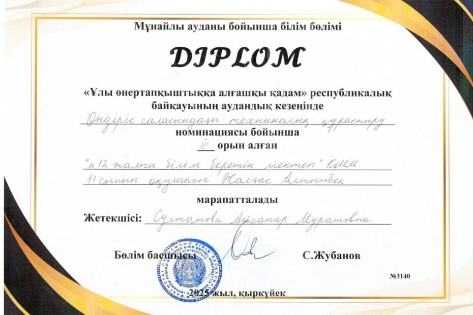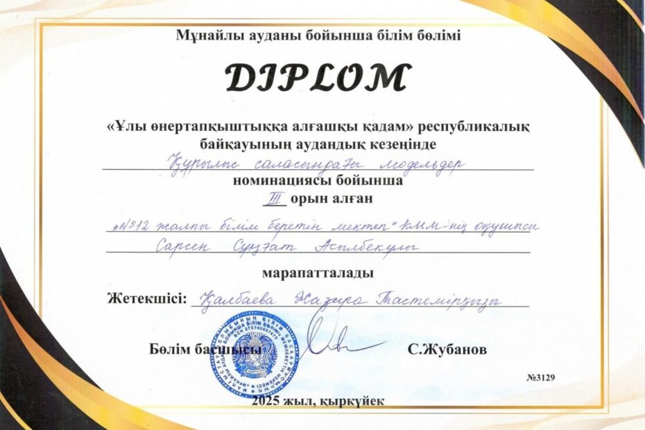 “Ұлы өнертапқыштыққа алғашқы қадам” республикалық байқауының аудандық кезеңінде “Өндіріс саласындағы…Қыркүйек 11, 2025