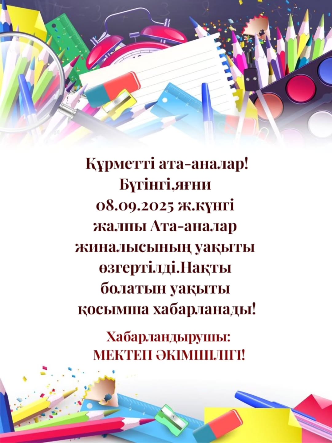 Аптаның алғашқы күнінде мектебімізге Аудандық Білім бөлімі басшысы Сағатбек Орынғалиұлы…Қыркүйек 8, 2025Желтоқсан 18, 2025