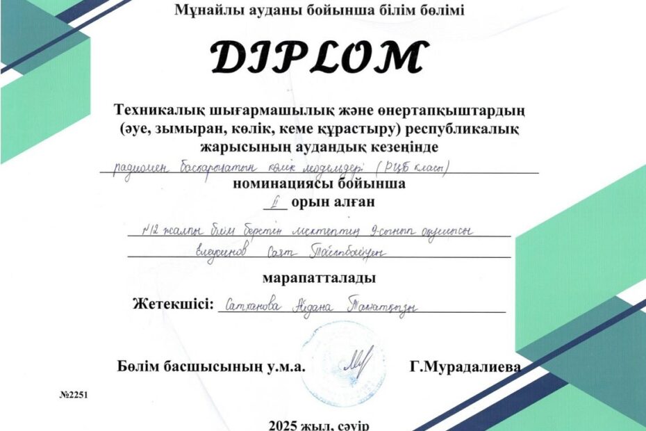 Техникалық шығармашылық және өнертапқыштардың(әуе, зымыран, көлік, кеме құрастыру) республикалық жарысының…Маусым 14, 2025