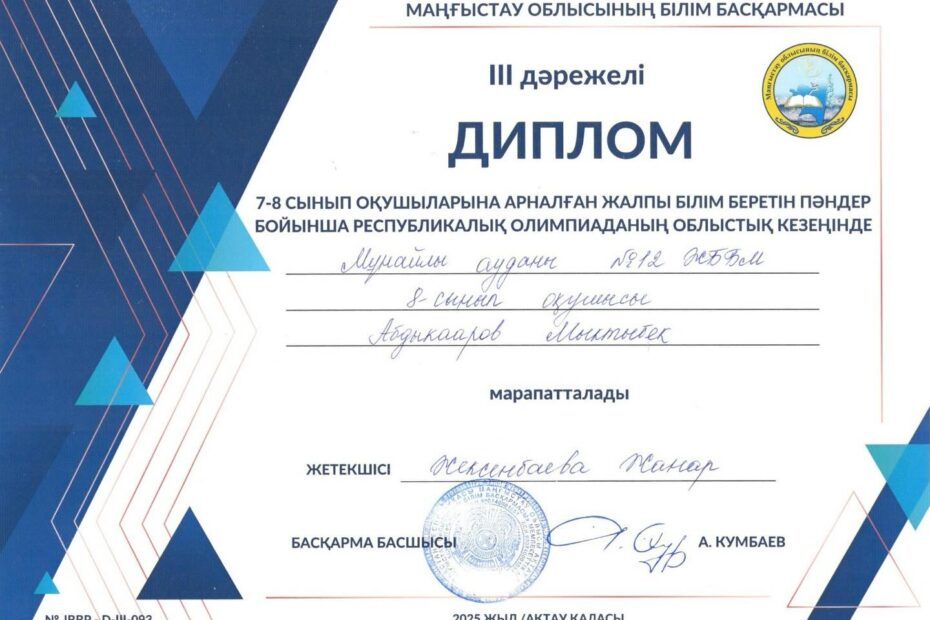🏫 «Келешек мектептері» жобасы аясында салынған Маңғыстау облысы Ақтау қаласындағы…Маусым 13, 2025Қараша 25, 2025