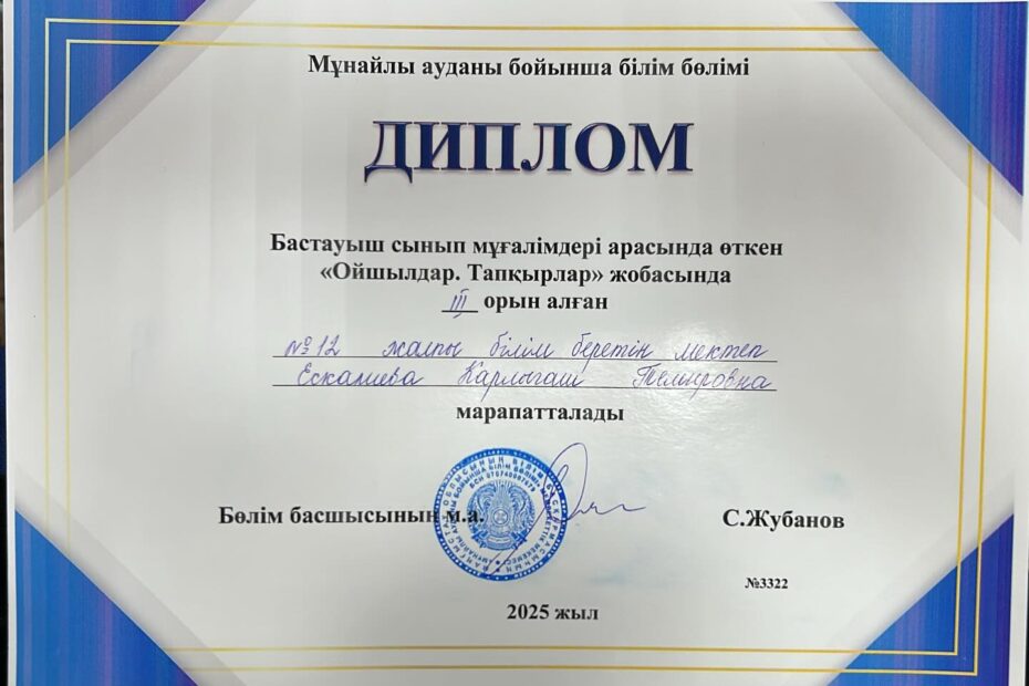 Бастауыш сынып мұғалімдері арасында өткен “Ойшылдар. Тапқырлар” жобасында мектебіміздің бастауыш…Қазан 9, 2025